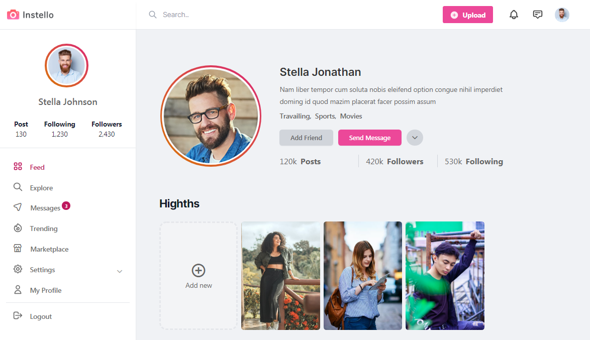 Is a template for developers who want to start their next Photo social sharing web application UI , is a minimal,clean and modern